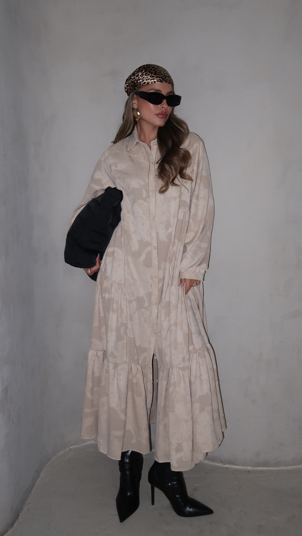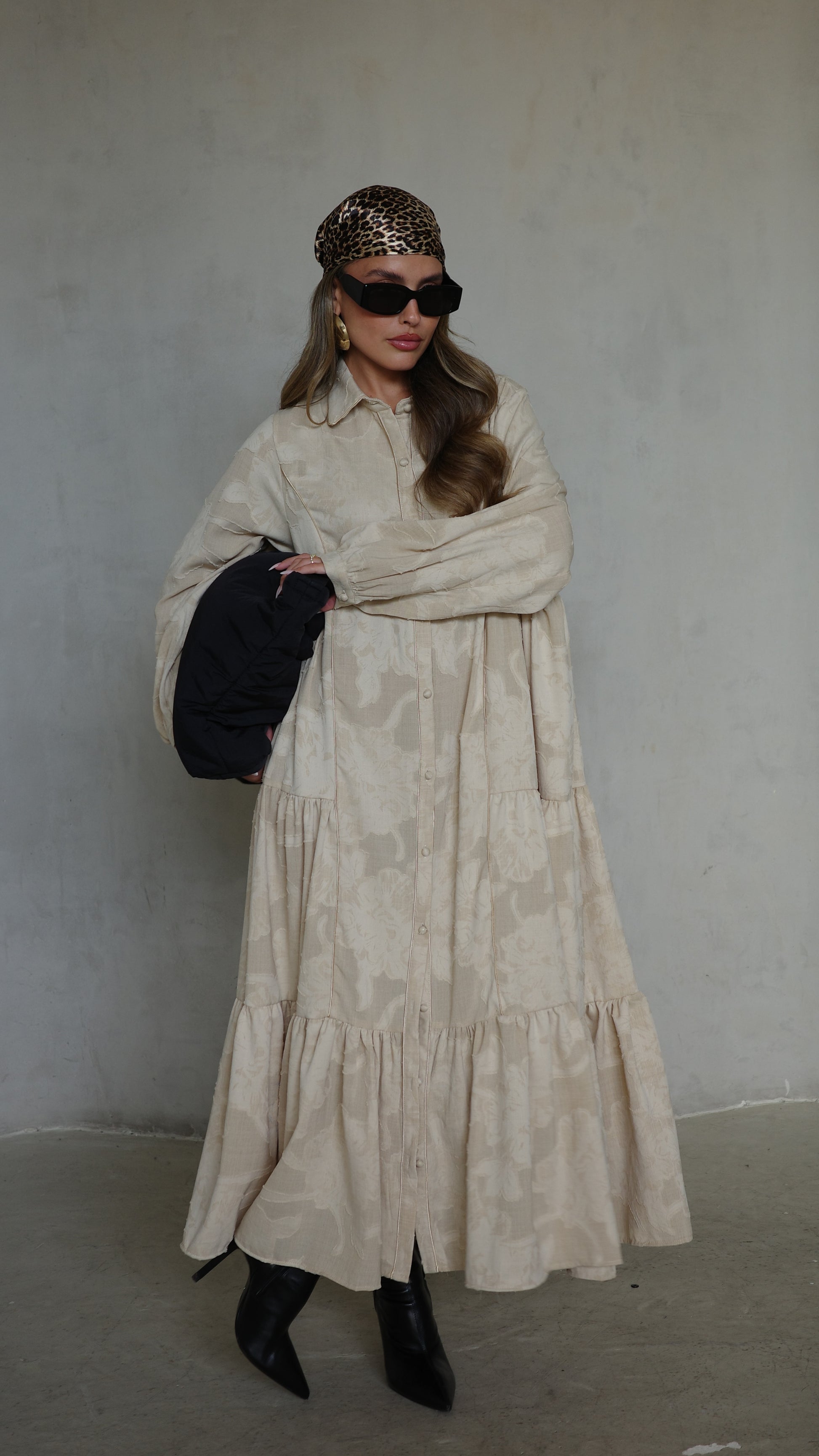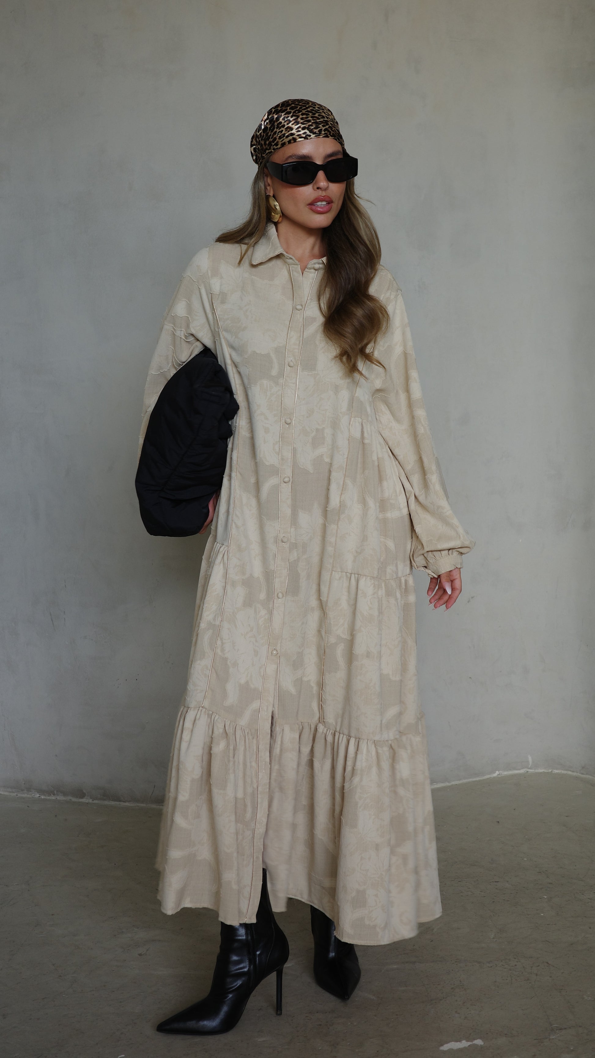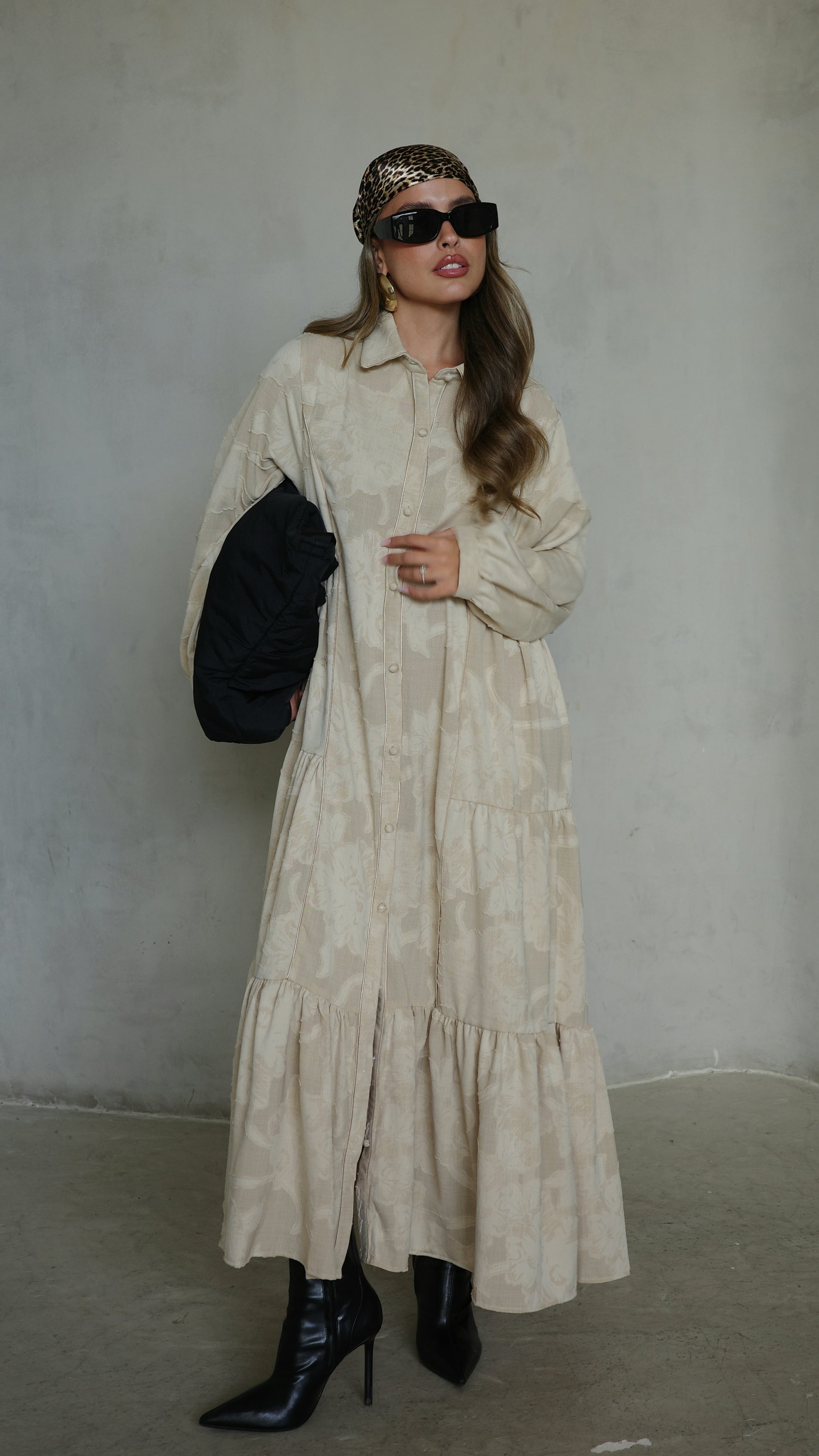 שמלת קלוש כפתורים טקסטורה אשלי | בז