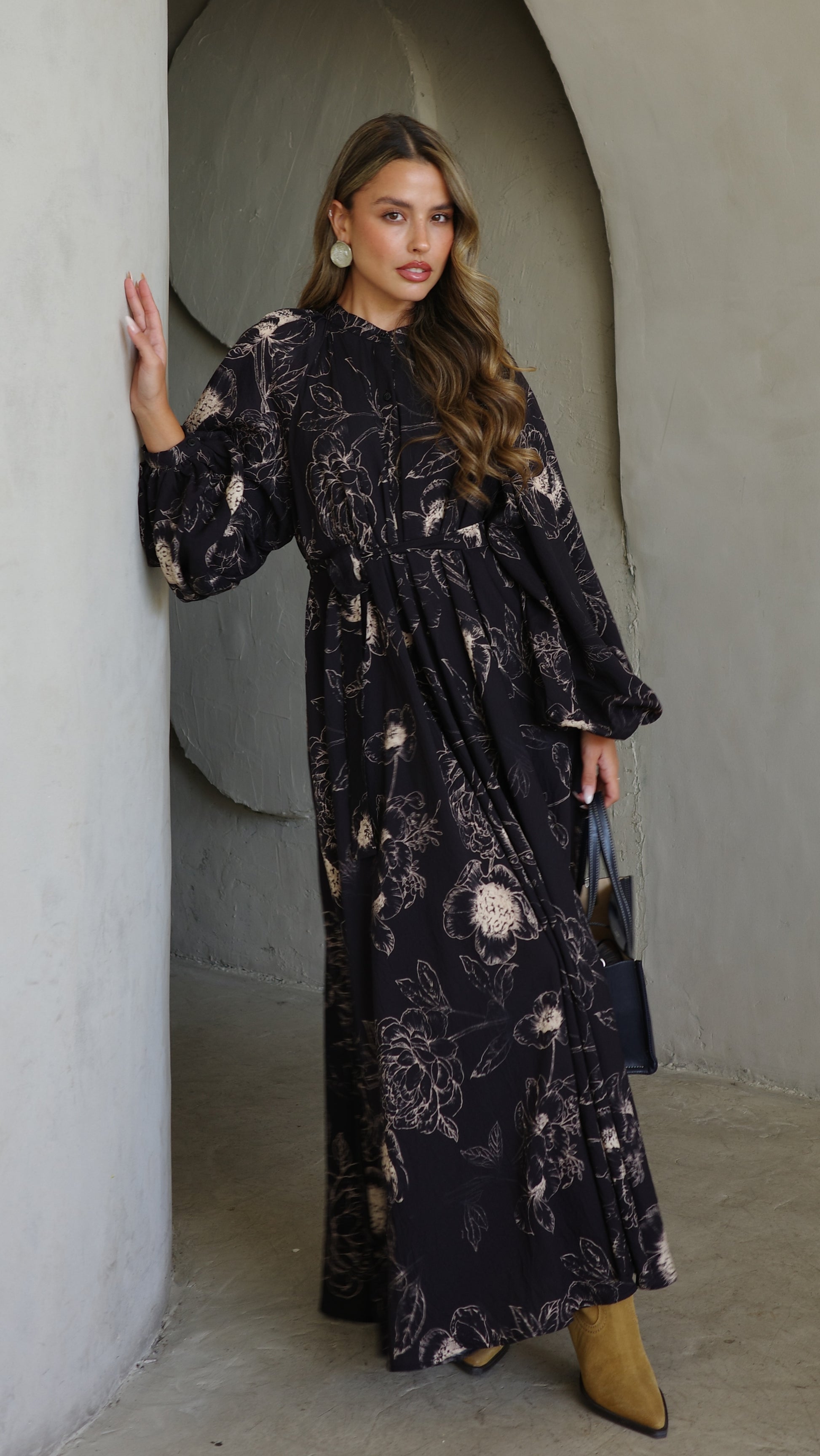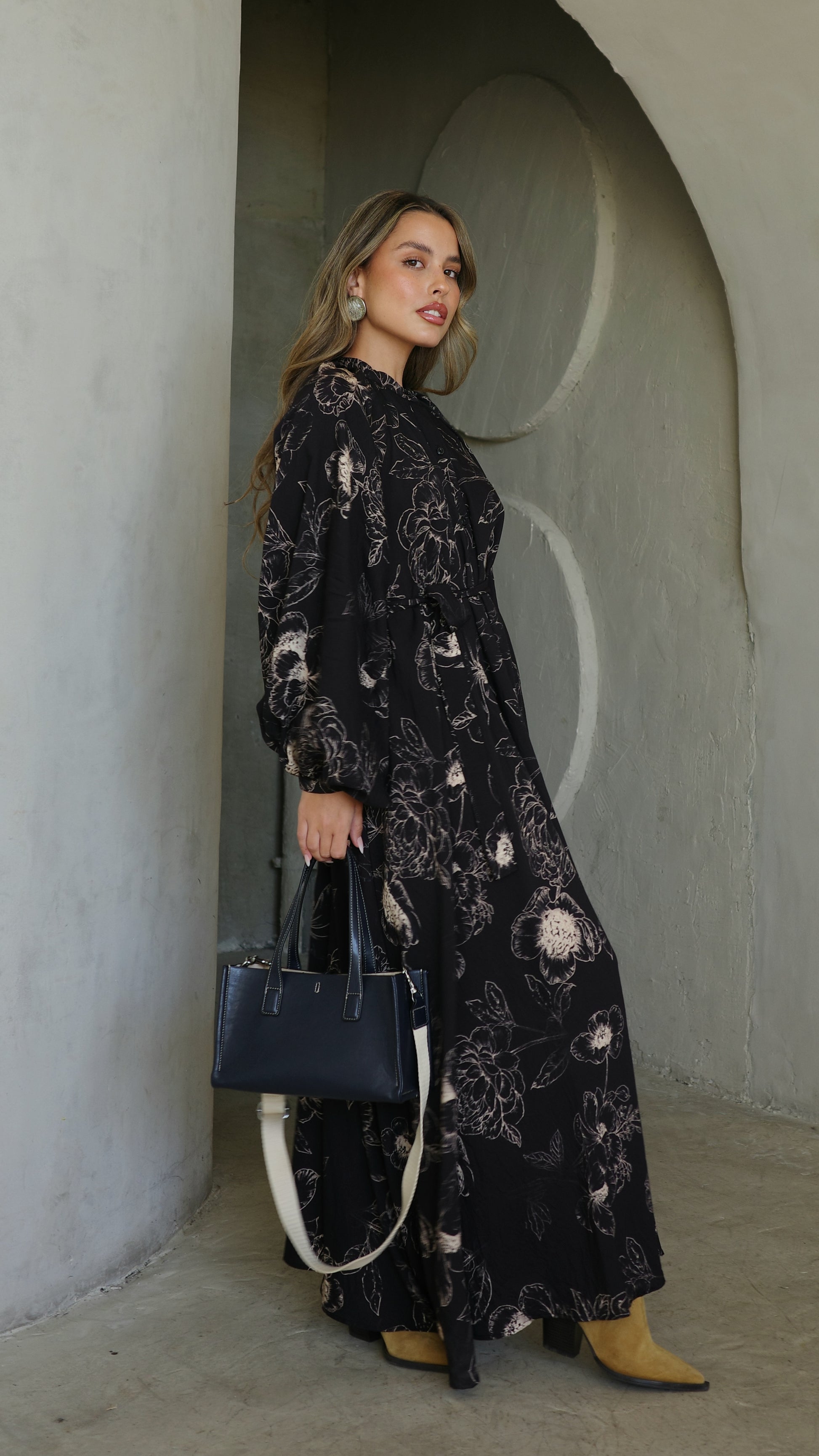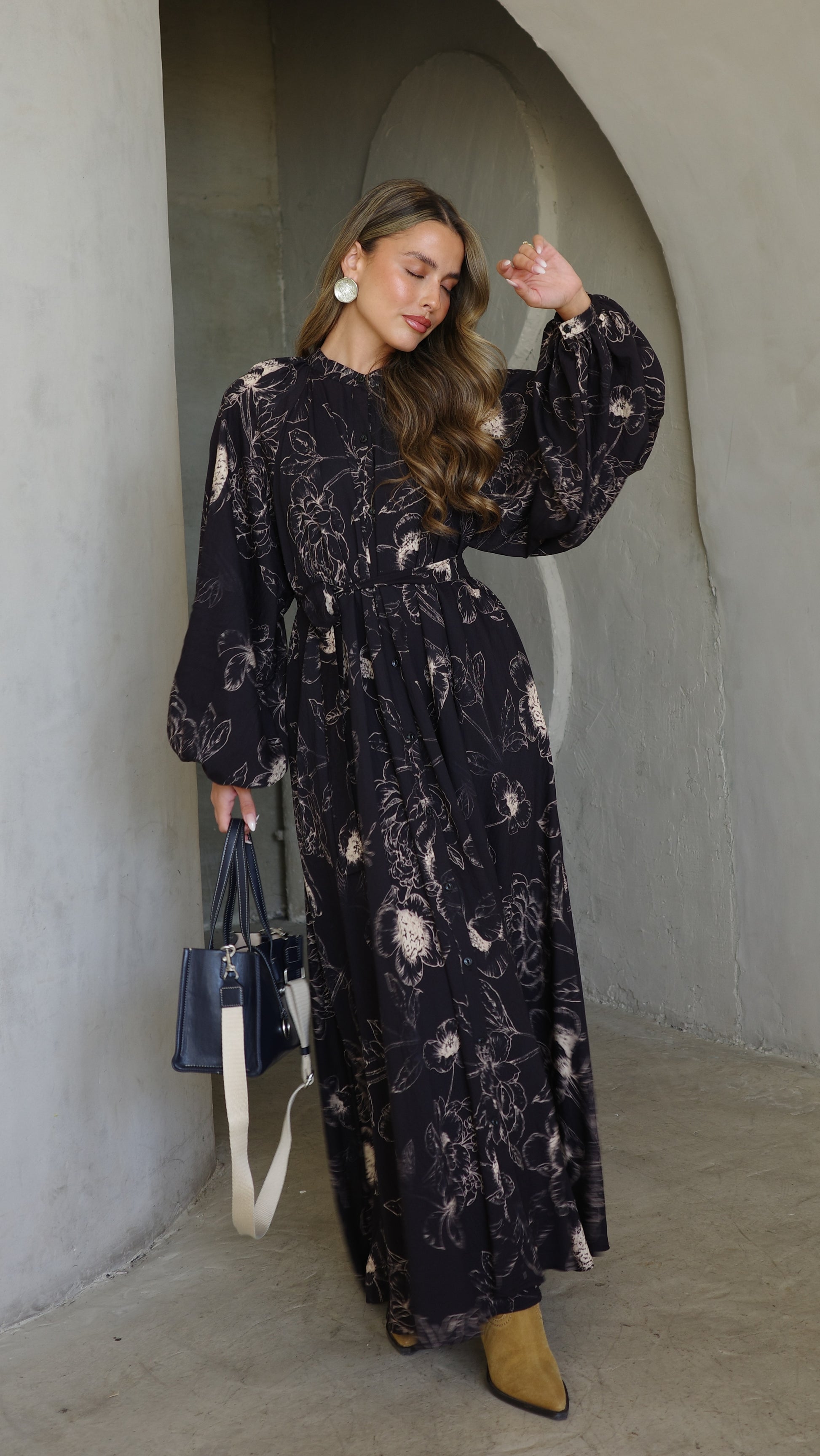 שמלת קלוש כפתורים פלווארס שיק | שחור