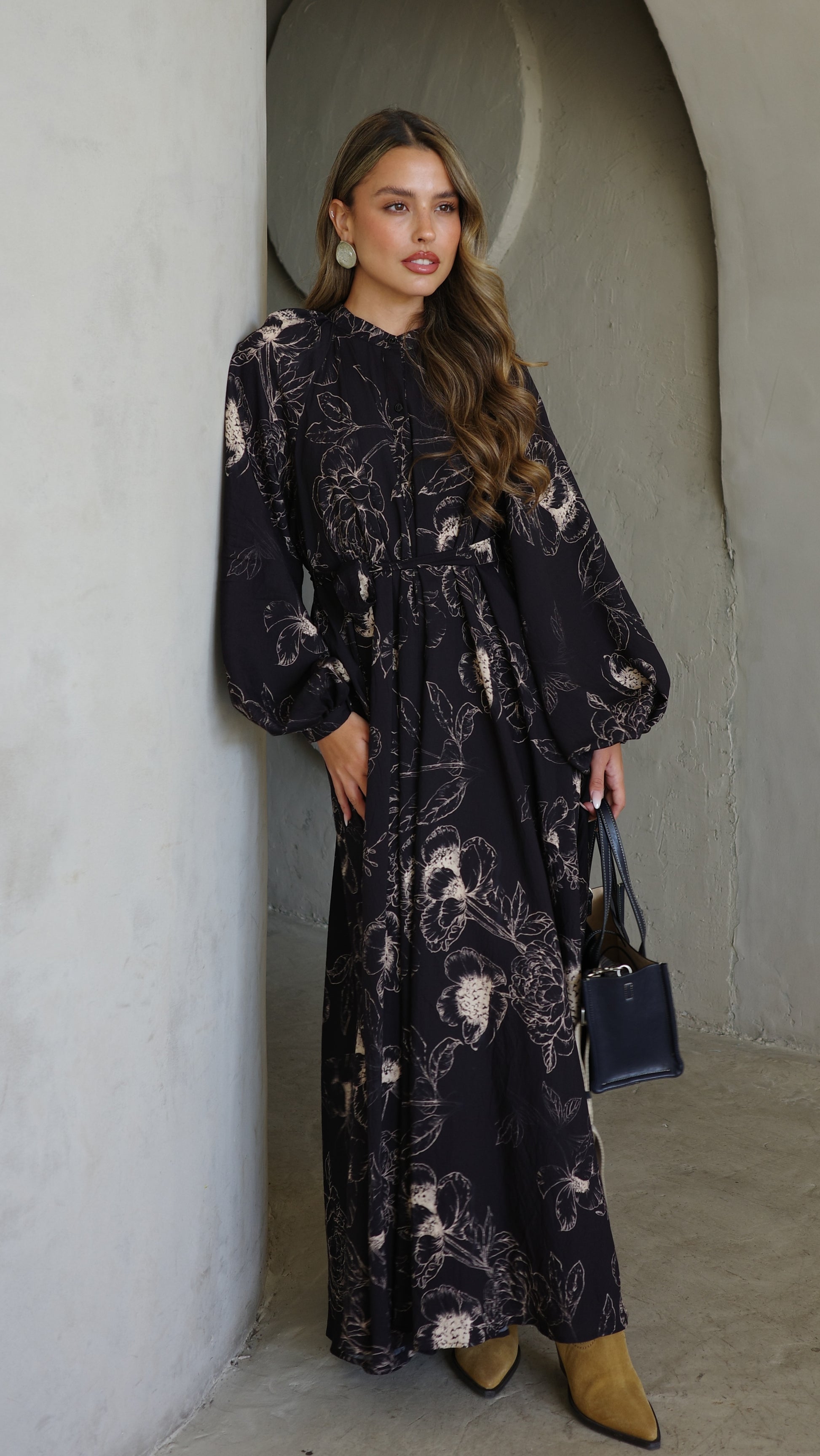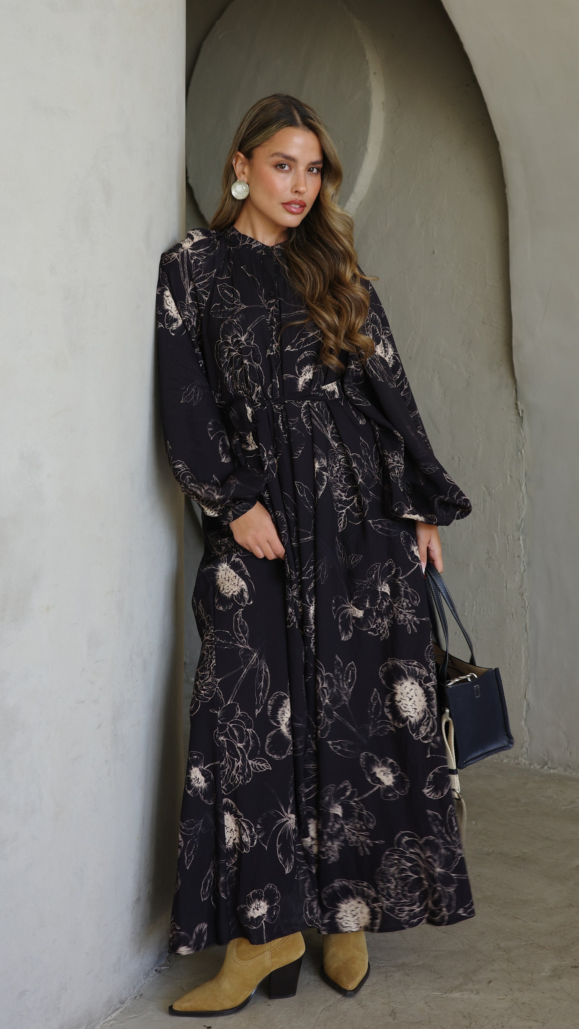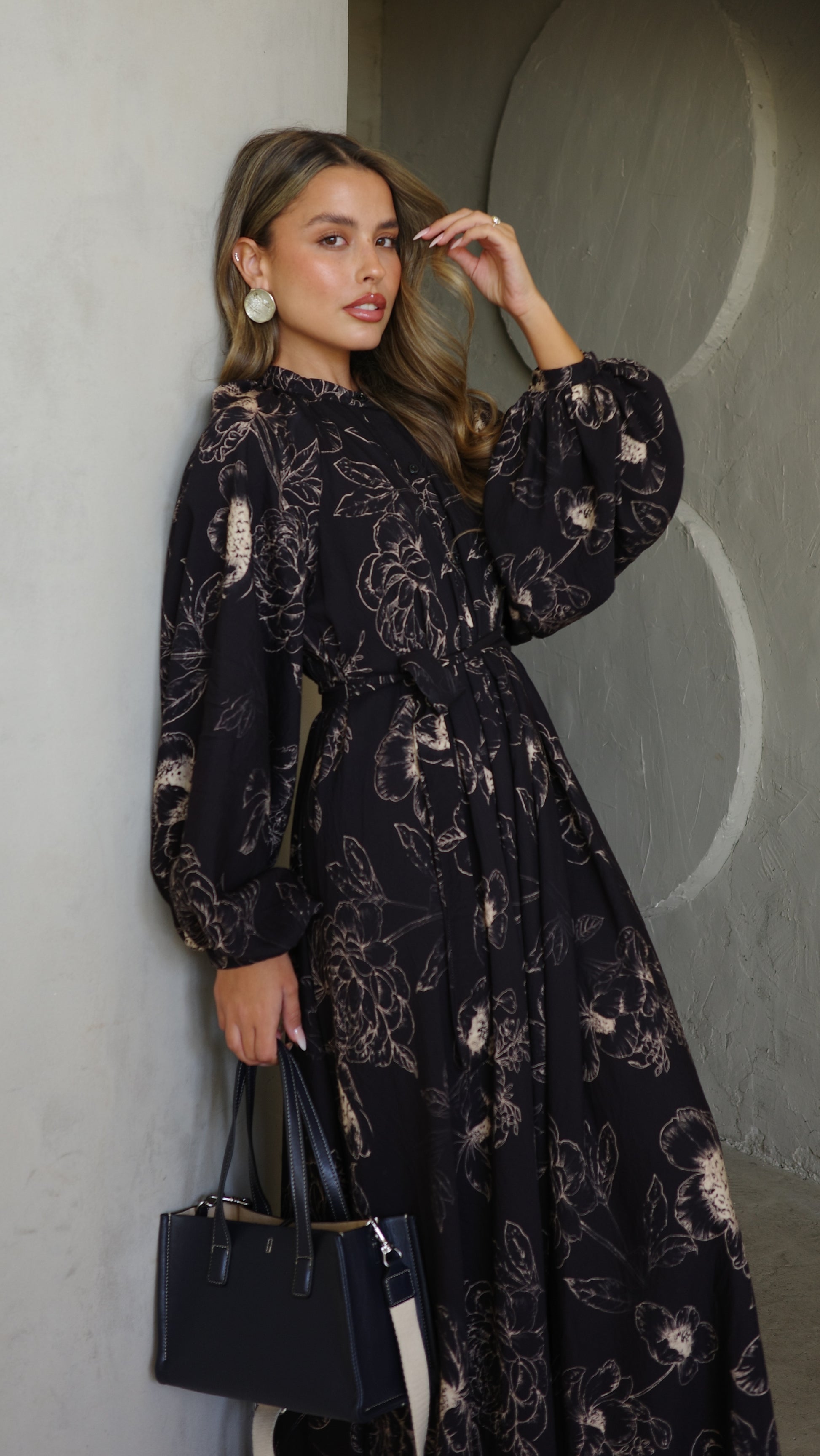 שמלת קלוש כפתורים פלווארס שיק | שחור