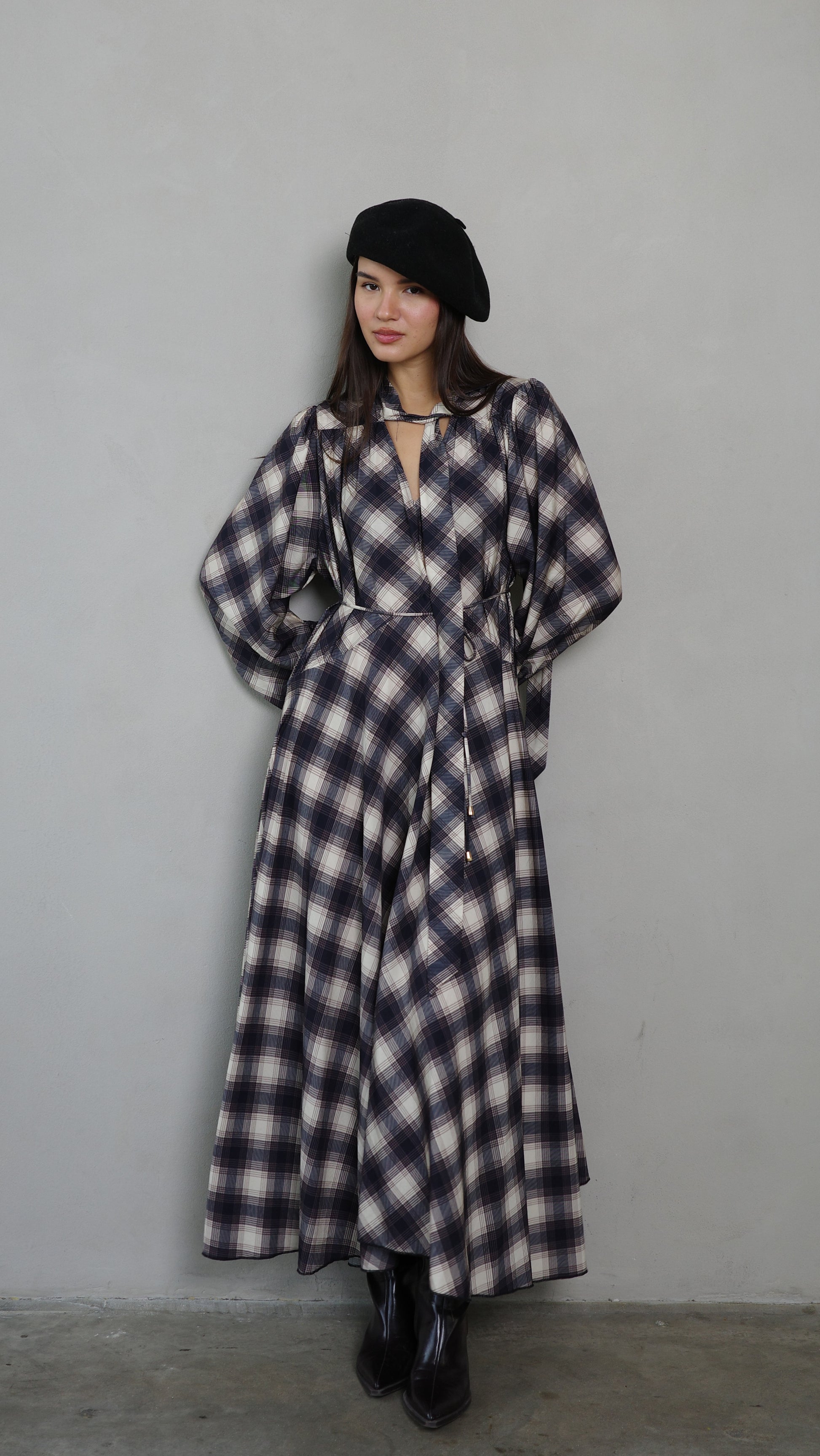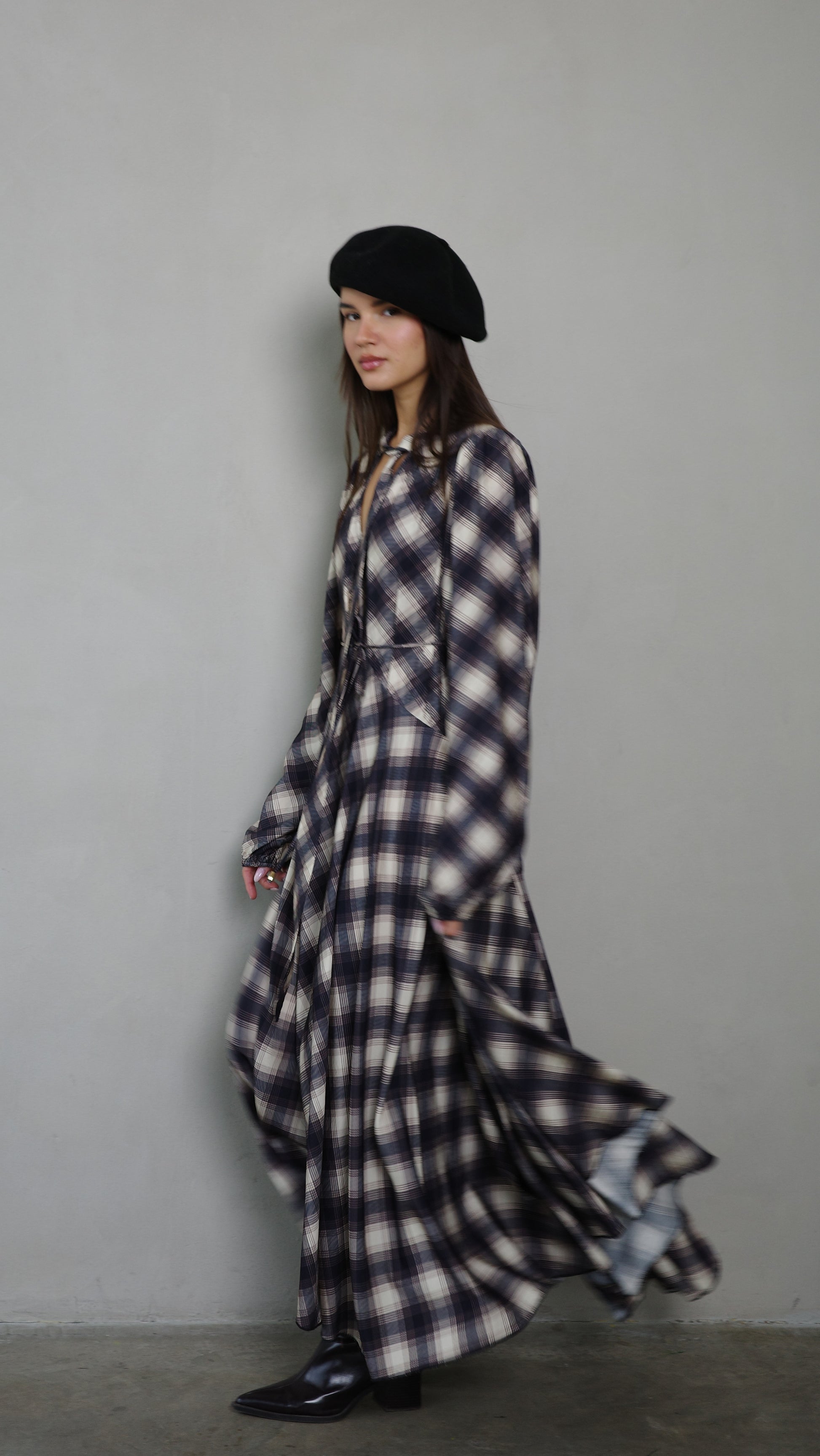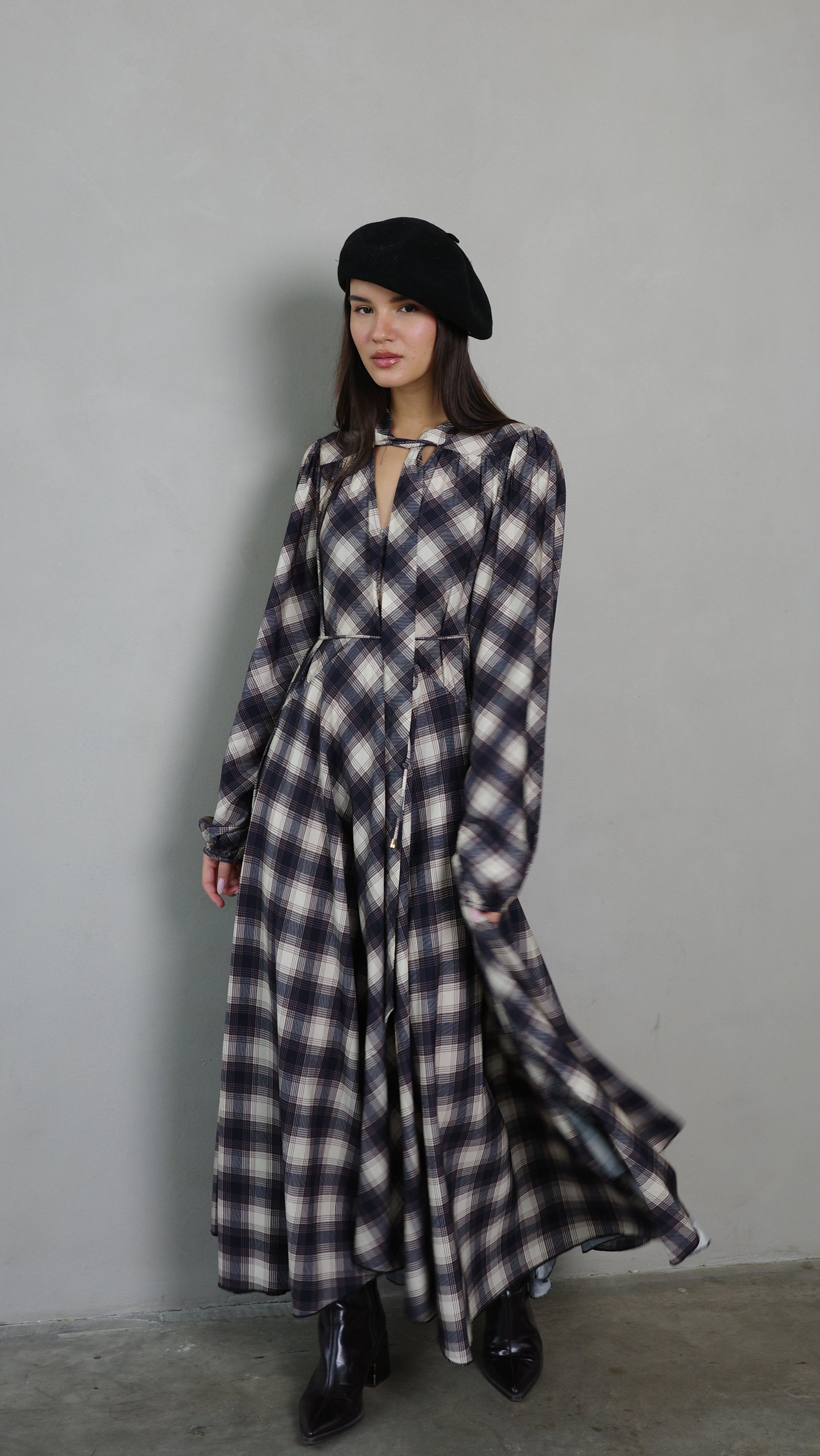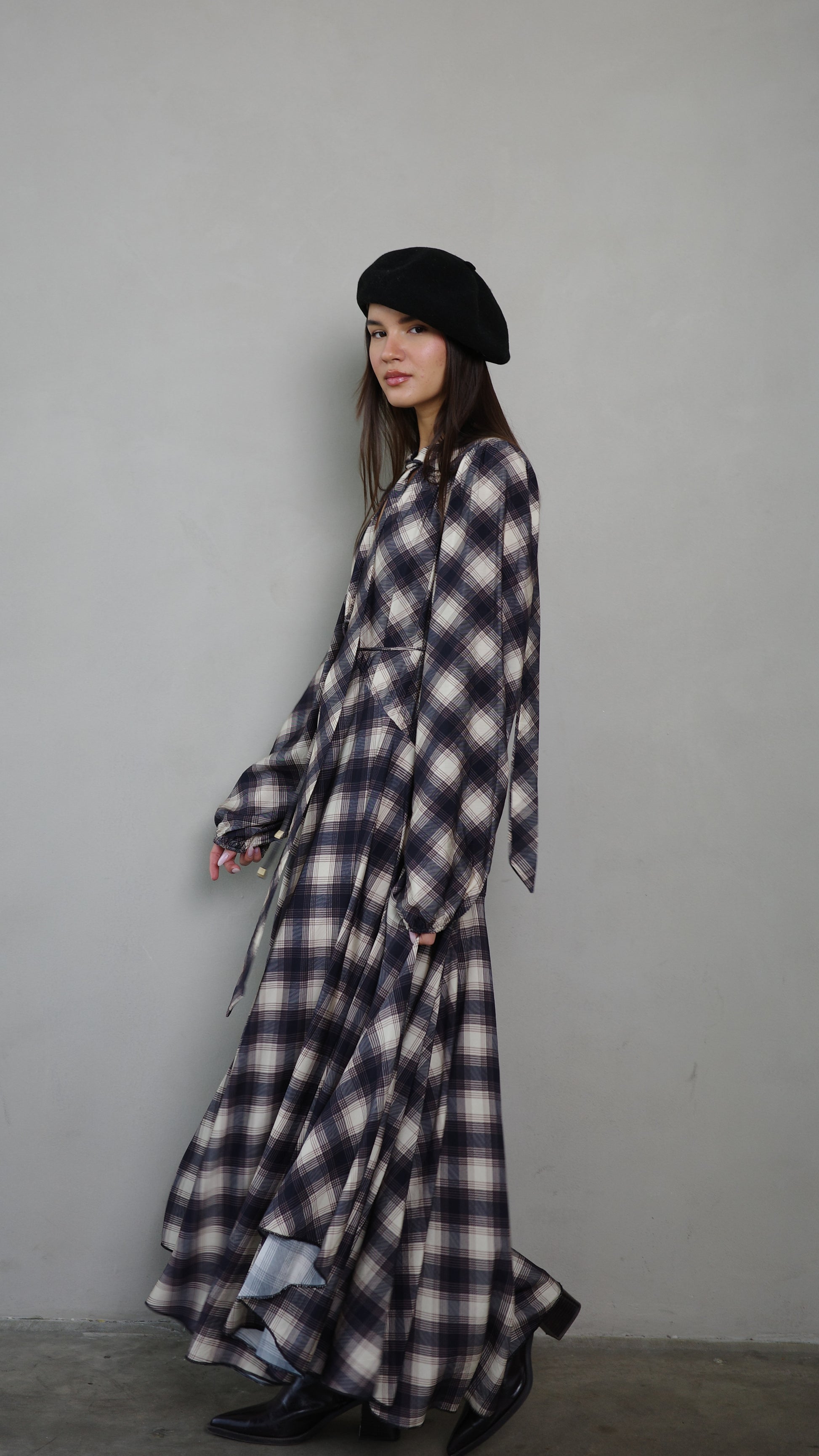 שמלת קלוש עניבה קארינה משבצות | בז/אפור