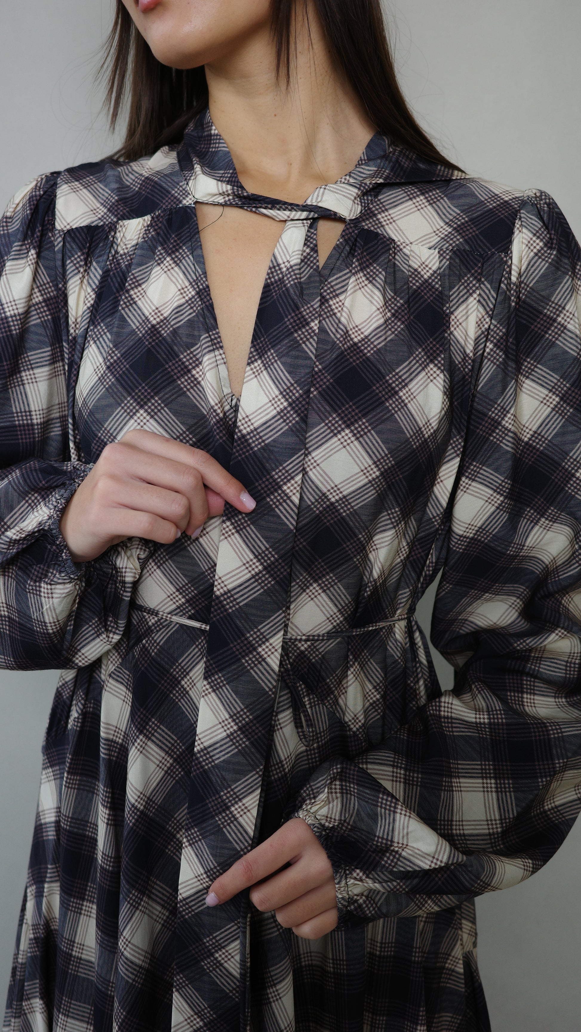 Title: שמלת קלוש עניבה קארינה משבצות | בז/אפור