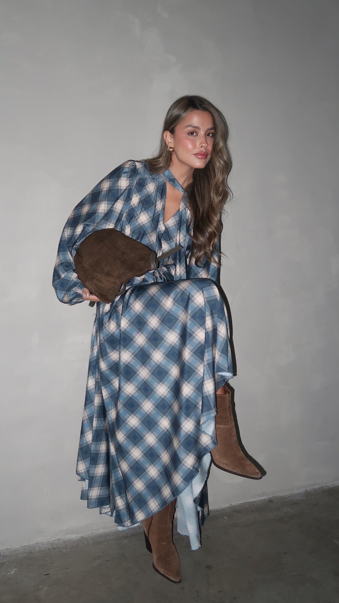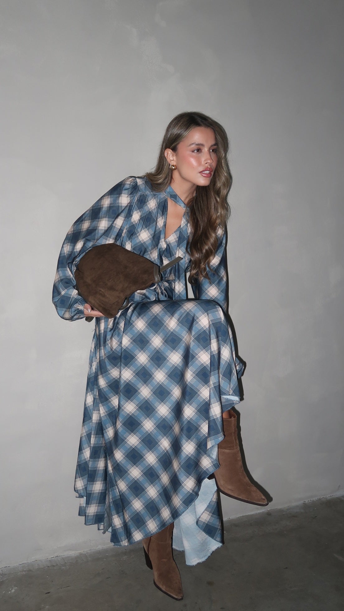 Title: שמלת קלוש עניבה קארינה משבצות | בז/כחול